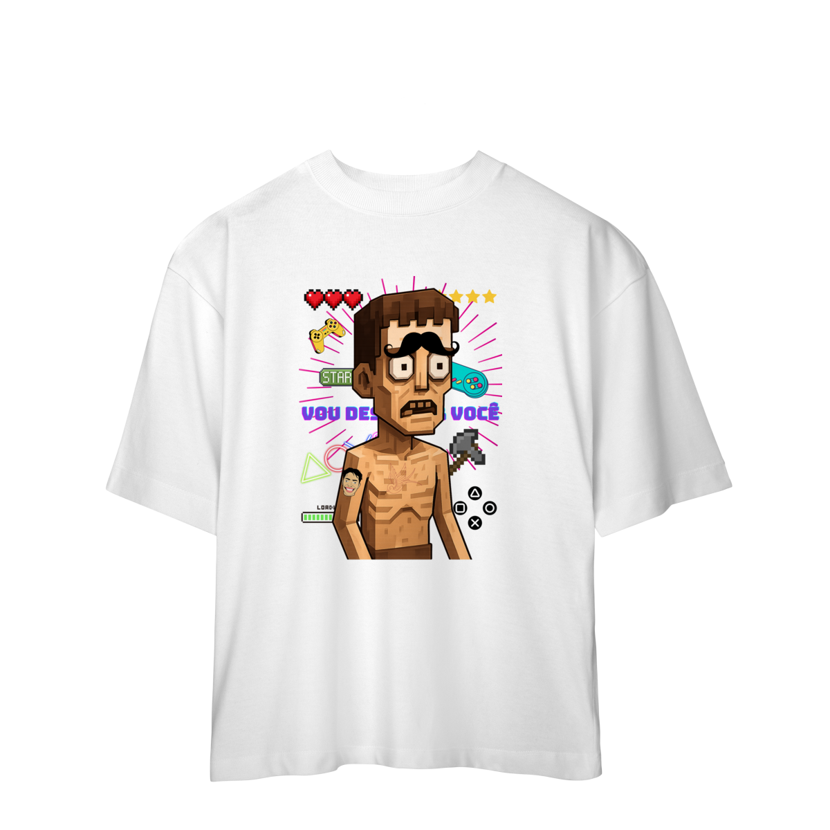 Nossa camisa traz uma estampa exclusiva em caricatura, feita no traço marcante da marca VOU DESENHAR VOCÊ – divertida, criativa e cheia de atitude.